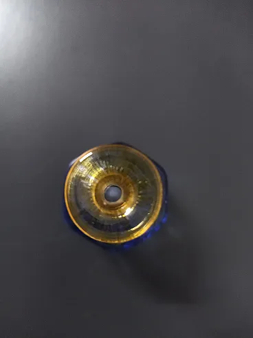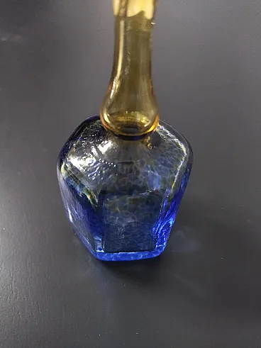 La bottiglia fa parte del modello "Antikva" della Boda Artist Collection, pezzo documentato nella guida Kosta Boda, caratterizzato da uno stile contemporaneo di arte astratta in vetro con colori blu e giallo, con un effetto maculato. È realizzato a mano in Svezia, firmato dall'artista e presenta una meravigliosa finitura lucida e punteggiata. Il vaso è un'edizione limitata.