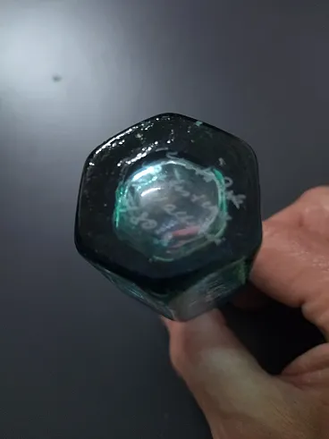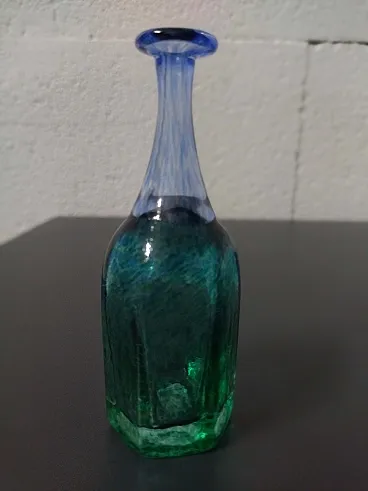La bottiglia fa parte del modello "Antikva" della Boda Artist Collection, pezzo documentato nella guida Kosta Boda, caratterizzato da uno stile contemporaneo di arte astratta in vetro con colori verde e blu, con un effetto maculato. È realizzato a mano in Svezia, firmato dall'artista e presenta una meravigliosa finitura lucida e punteggiata. Il vaso è un'edizione limitata.