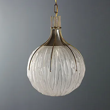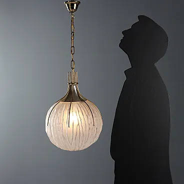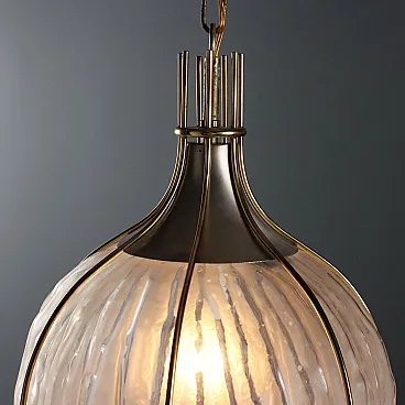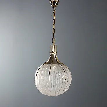 Lampada da soffitto in metallo, ottone e vetro, anni '70