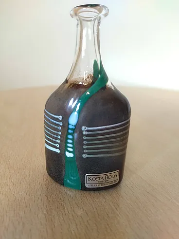 Bottiglia vintage in vetro soffiato artistico in miniatura “Ateljé” #305844016 dalla Svezia creazione del maestro vetraio Bertil Vallien ( uno dei più famosi designer del vetro europei del XX secolo), per Kosta Boda negli anni '80 è un pezzo della serie “Miniature”