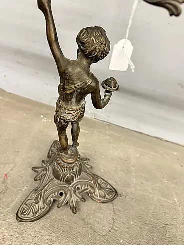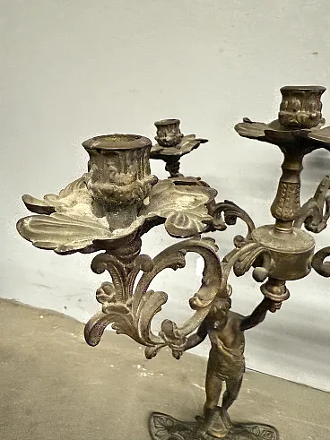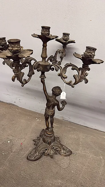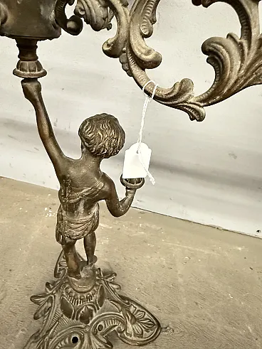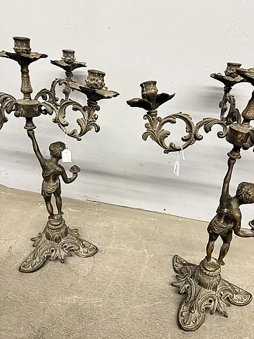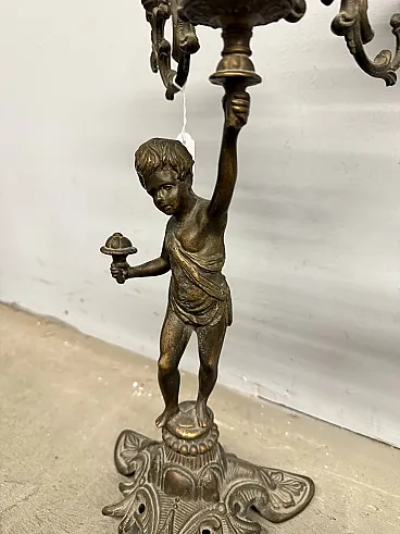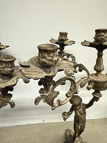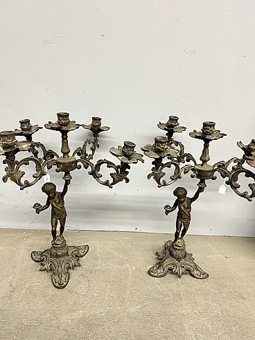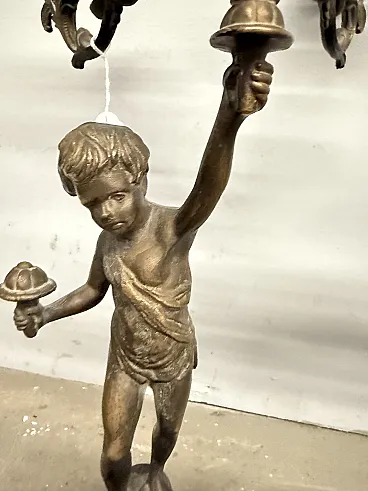 Coppia di candelabri in bronzo a cinque fiamme con putti, '900