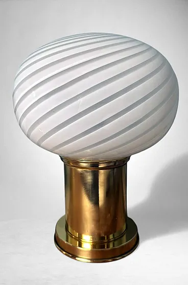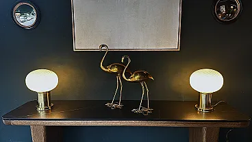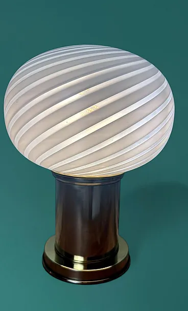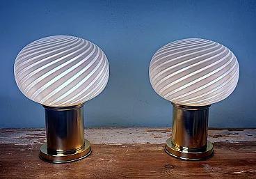 Coppia di lampade in ottone e vetro di Murano, anni '80