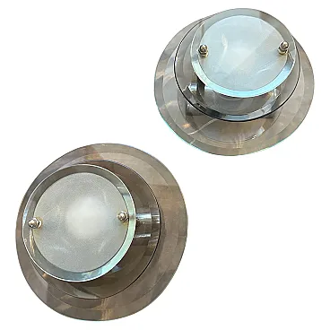 Coppia di applique in vetro e metallo cromato di Veca, anni '60