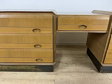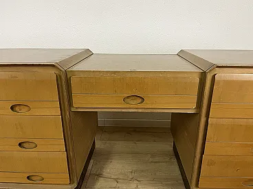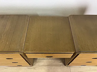 Cassettiera consolle a 3 corpi in legno e ottone, anni '60