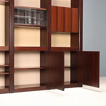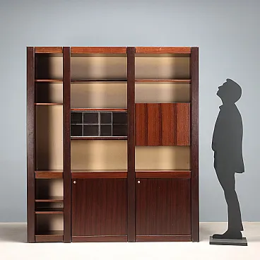 Libreria Acerbis in legno esotico impiallacciato, anni '80