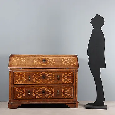 Comò barocco con luci della ribalta in scrivania di lempi in acero in noce, '700