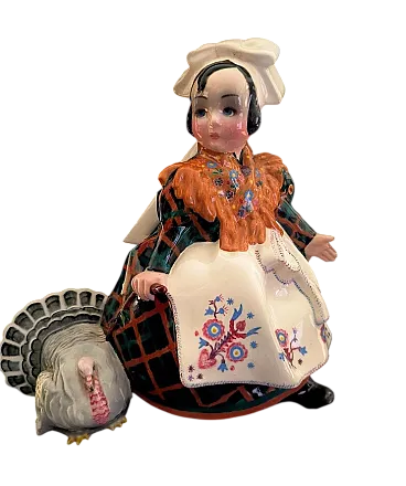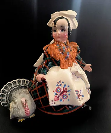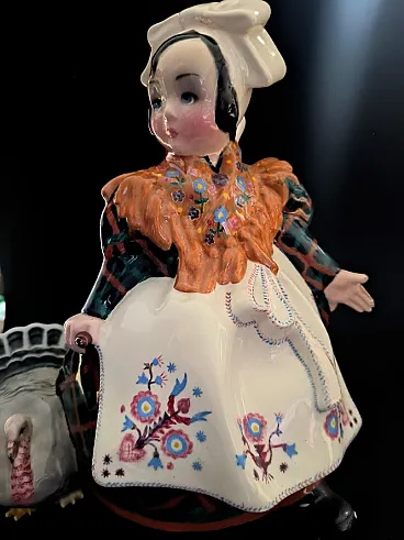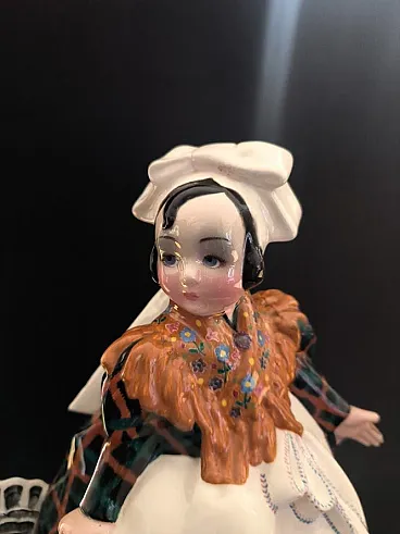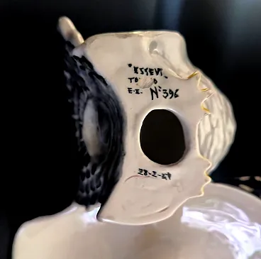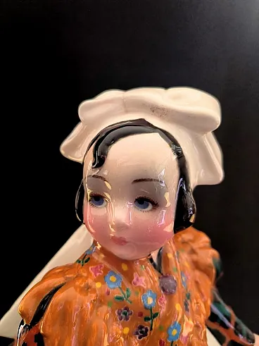 Ceramica italiana "Collinella Girl con vestiti tradizionali" della produzione Essevi, Sandro Vacchetti - Torino degli anni '30/40 La produzione per la produzione di ceramica artistica "Essevi" è fondata nel 1934 dal pittore, in ceramista e designer Sandro Vacchetti nella società con il Torino Ceramicista nei franchini, ex dipendenti del Turino Cerambic ". La produzione della compagnia, che utilizza, tra gli altri, della collaborazione dello scultore Otto Maraini e di Giovanni Grande e sua moglie Ines Panchieri Grande, segue spesso le opere della compagnia "Lenci", di cui i Vacchetti erano stati direttori artistici dalla fondazione fino al 1933, ed è composto da figure di Donnine in abiti succinti. Dalla fine degli anni '30, il "Essevi" fa anche uso della collaborazione dello scultore di Cagliari Alessandro Mola di R. Alemanno e Camillo Ghigo e ancora dei decoratori Margherita Costantino e Renata Ponti e Giovanni Taverna a cui si violano il regista artistico - Design. Negli anni della seconda guerra mondiale, la produzione si trasferì a Carrù, nella provincia di Cuneo, dove crea una ridotta produzione. Tornando a Torino nel 1945, "Essevi" chiude le sue porte nel 1952 in cui, avendo lasciato l'attività di Ceramista, Sandro Vacchetti torna a dedicarsi, per alcuni anni, esclusivamente alla pittura. All'inizio degli anni sessanta Sandro Vacchetti si trasferì a Roma dove, insieme a Romagna e Assandro, fondò la produzione di ceramica "Crea" con cui, tra gli altri, funziona Bruno Bagnoli. La produzione continua la produzione su alcuni degli stampi di "Essevi" senza tuttavia raggiungere gli stessi risultati qualitativi.