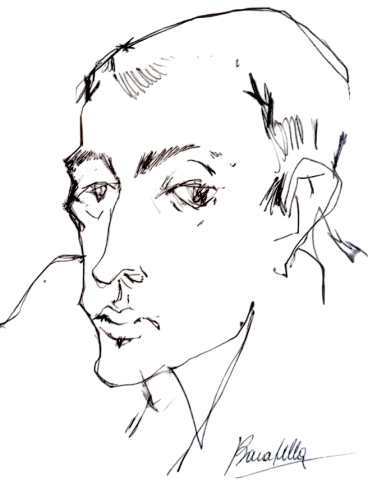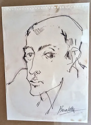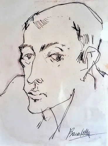 Ritratto a inchiostro su carta G.P. Testa di PAOLO BARATELLA, anni '70