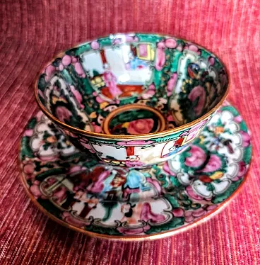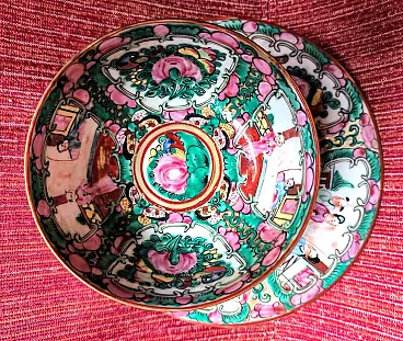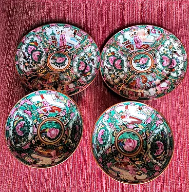 4 ciotole con piatti in porcellana con medaglione rosa, anni '30