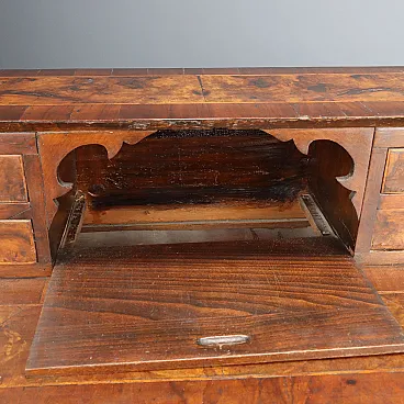Comò barocco con piano a ribalta in noce e pioppo, '700