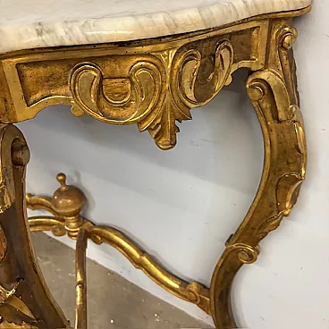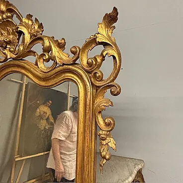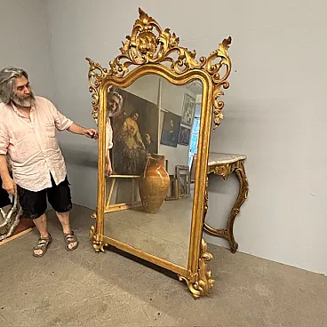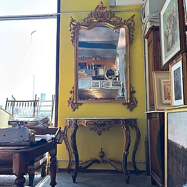 Antica monumentale console + specchio Luigi Filippo 1840 Foglia oro a