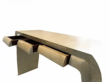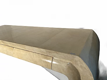 Importante italian consolle in vera pergamena realizata da maestri ebanisti. Mobile di incredibile eleganza attribuibile a Marcello Piacentini. Consolle perfettamente restaurata e pronta per arredare una parete della vostra prestigiosa casa. Per la vostra tranquillità rilasciamo un certificato di autenticità fotografico. Osservate con attenzione le immagini sono parte integrante della descrizione. Tutti i miei oggetti avranno con se la ricevuta fiscale o la fattura per chi ne avesse bisogno. Per qualsiasi altra informazione non esitate a contattarmi. Date uno sguardo al mio negozio ci sono cose molto interessanti