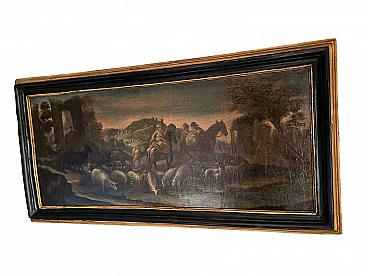 Dipinto italiano scuola napoletana con paesaggio bucolico, fine '600