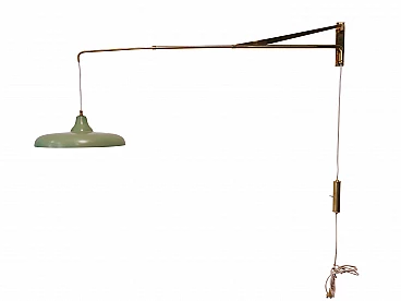 Applique completamente in ottone con cupola in alluminio ,con braccio estensibile e regolabile nello stile Stilnovo.