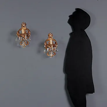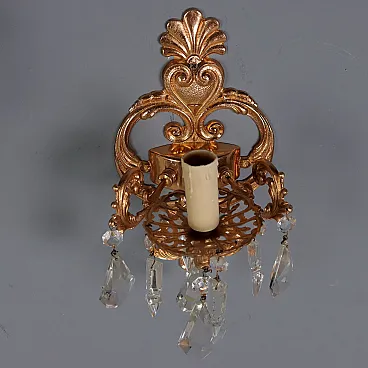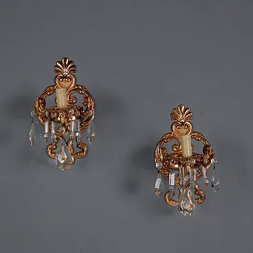 Coppia di appliques in stile rococò in bronzo e cristallo, '900