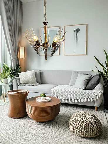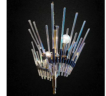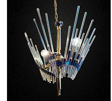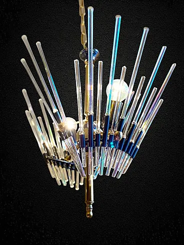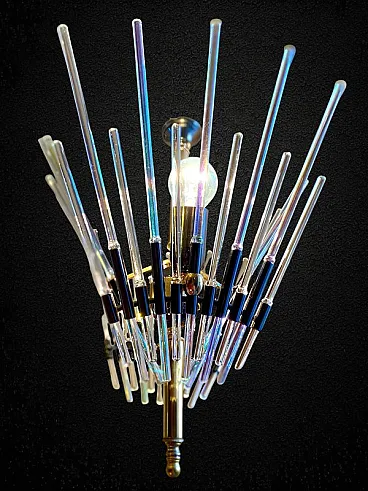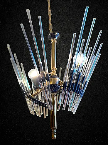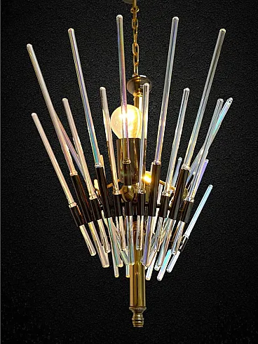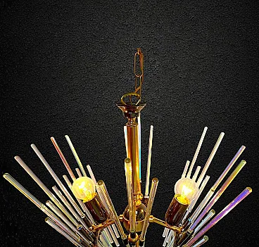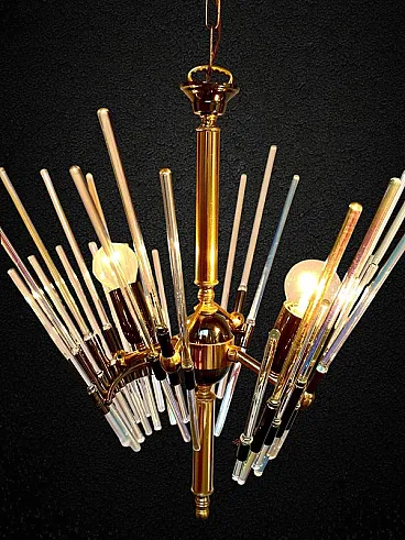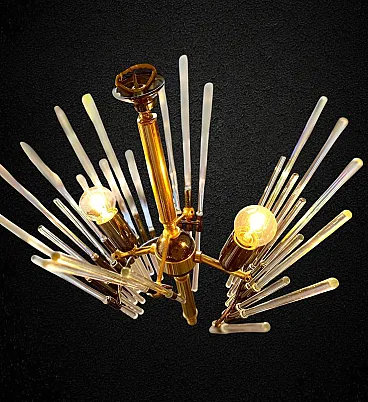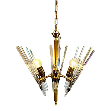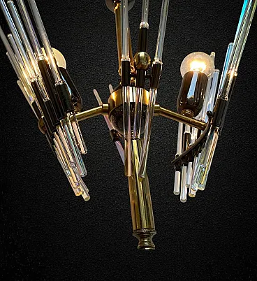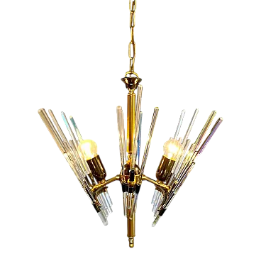 Lampadario Golden Era in ottone e vetro stile Sciolari, anni '60