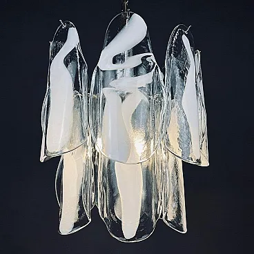 Lampadario in vetro di Murano bianco di Mazzega, anni '60