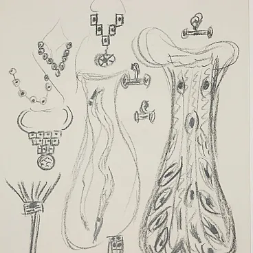 Disegno di Remo Brindisi, bozzetto per i costumi di Aida, anni '70
