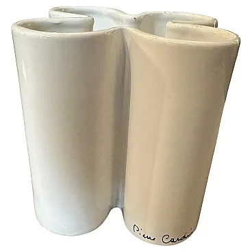 Vaso in ceramica bianca Mid-Century Modern di Pierre Cardin, anni '70