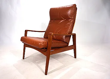 Poltrona Komfort in pelle e teak di Arne Wahl Iversen, anni '60