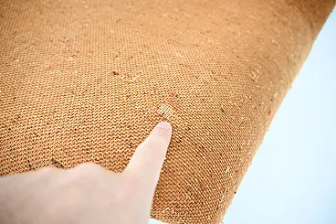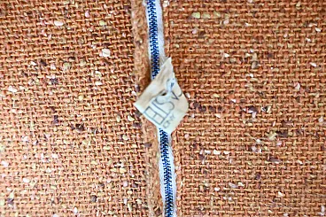 Coppia di sedie in tessuto arancione originali. Altezza del sedile: 38 cm. Etichette Castelli. Indossare a causa del tempo e dell'età.