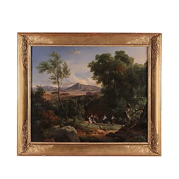 L'olio su tela rappresenta una veduta della cittadina di Frascati con pianure e montagne sullo sfondo. Funge da quinta architettonica un paesaggio naturale boschivo, con alberi dall'alto fusto, mentre in primo piano ci sono dei massi e dei sentieri terrosi. Al centro si apre una raduna nella quale due personaggi, vestiti con abiti popolani ma variopinti, stanno danzando; attorno a loro altre figure li stanno osservando, chi in piedi e chi seduto sull'erba. Il cielo azzurro è leggermente velato e crea un contrasto cromatico con la tavolozza usata per realizzare le fronde degli alberi e il paesaggio terroso sullo sfondo.