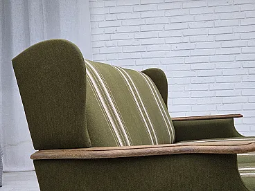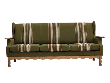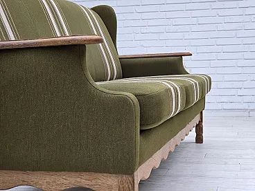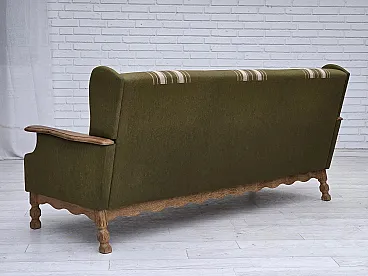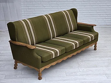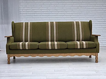 Divano danese a 3 posti in lana e legno massello di rovere, anni '70