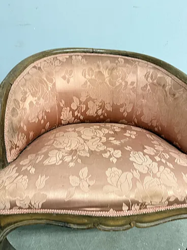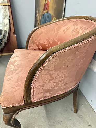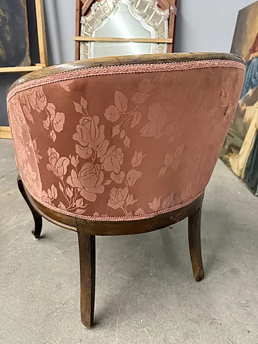 Poltroncina a pozzetto in noce Art Decò rivestimento in seta, 1940