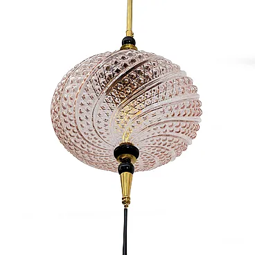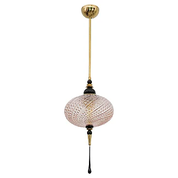 Lampada a sospensione in vetro di Murano soffiato e ottone, anni 2000