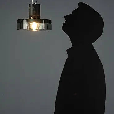 Lampada da soffitto in metallo e vetro, anni '60