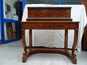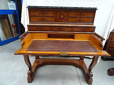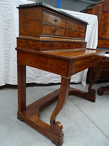 Scrittoio Carlo X in mogano di Cuba intarsiato Piemonte, '800
