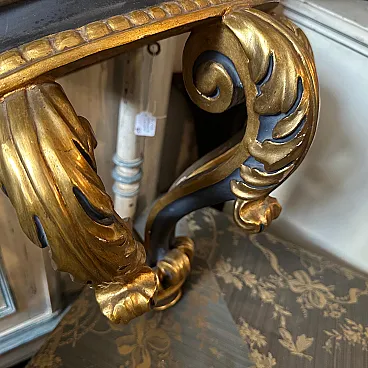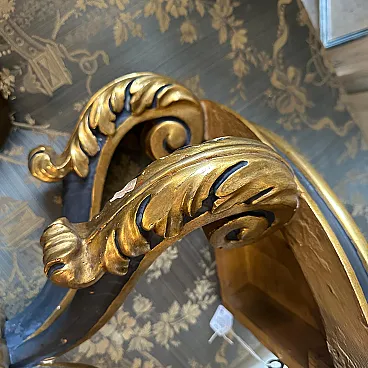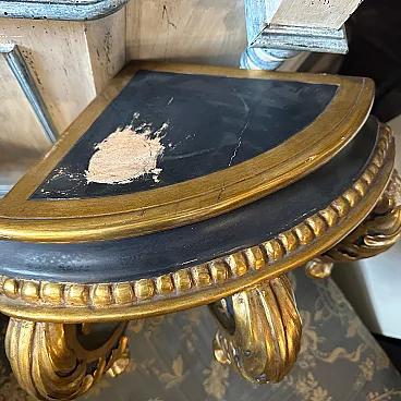 Consolle d'angolo in legno dorato e laccato blu barocco, '800