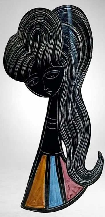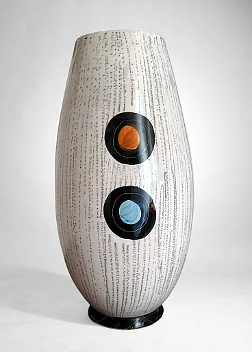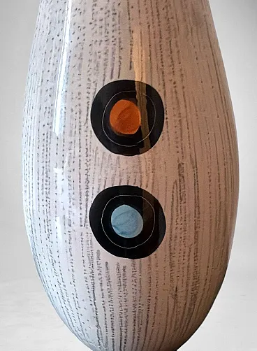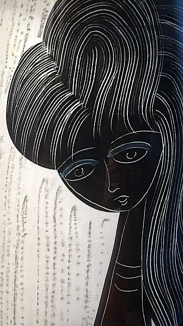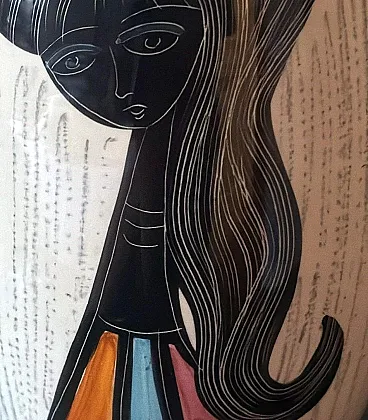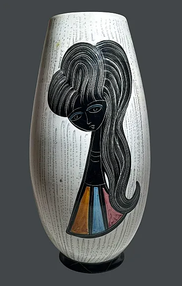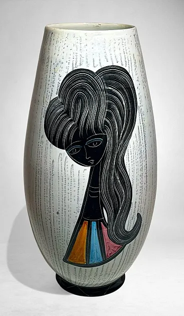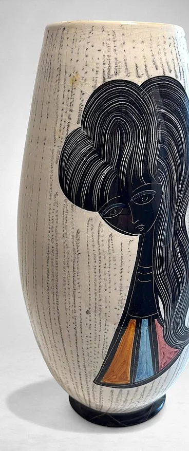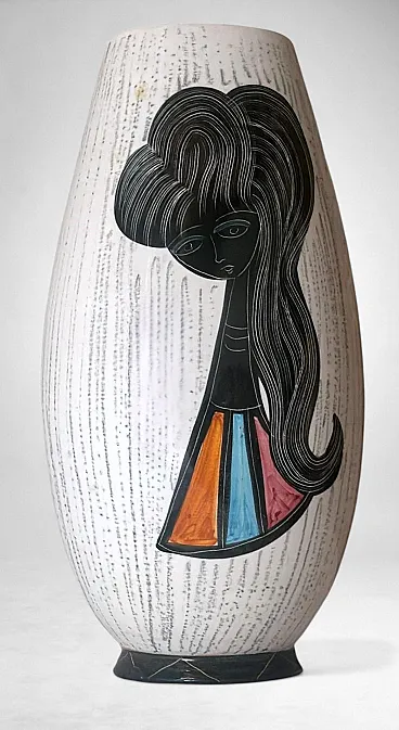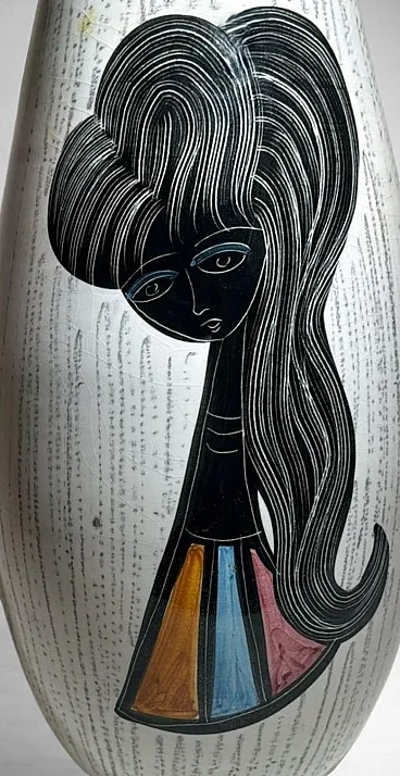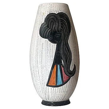 Vaso in ceramica con ragazza stilizzata e motivi geometrici, anni '60