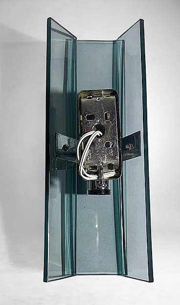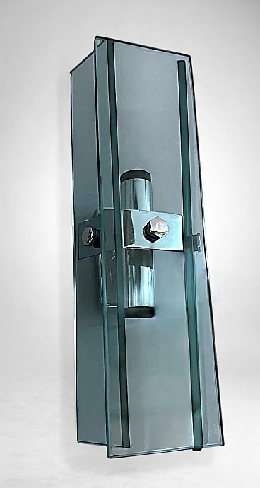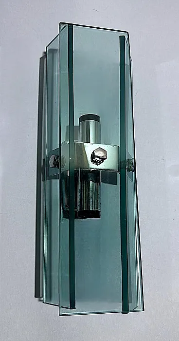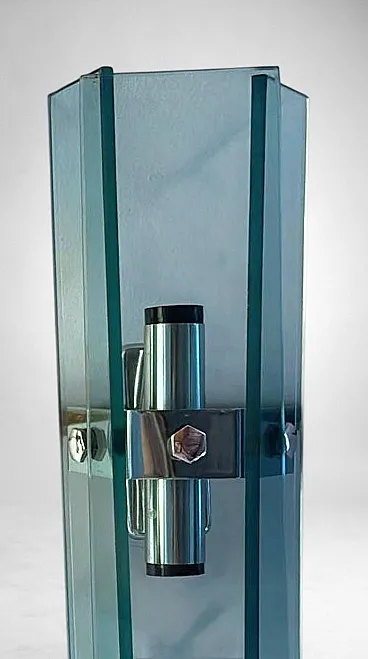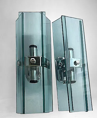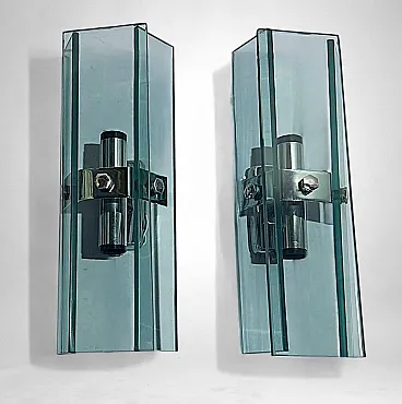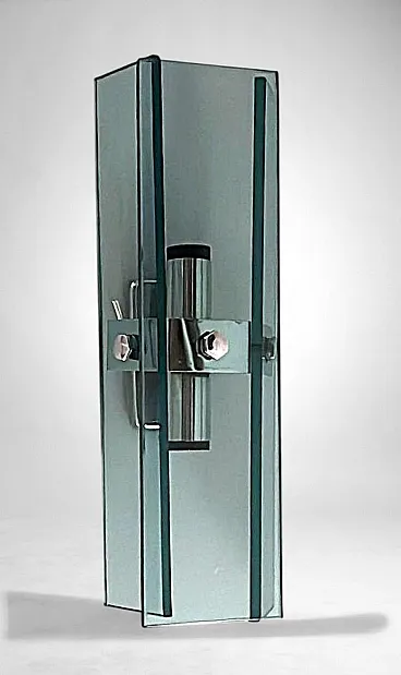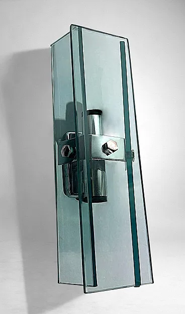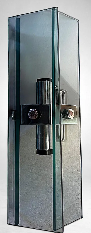 Coppia di applique in metallo cromato e cristallo temperato, anni '70