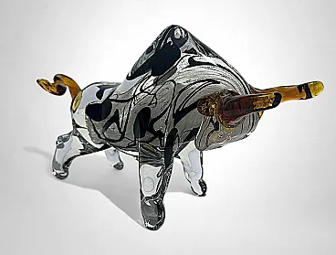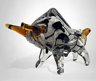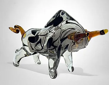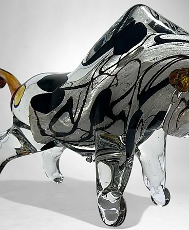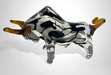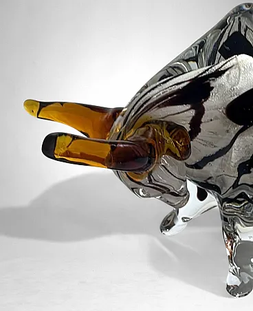 Scultura di toro in vetro di Murano sommerso, anni '70