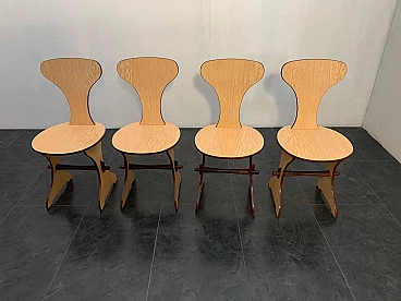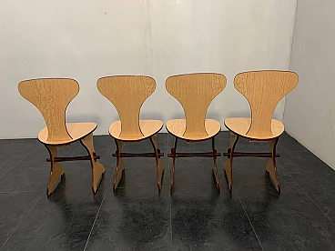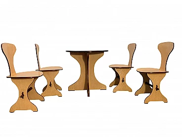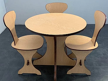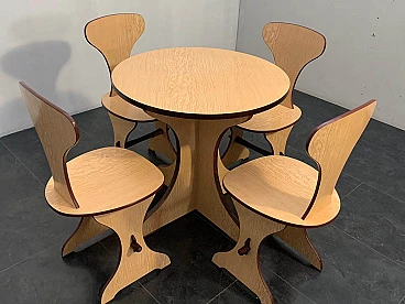 Tavolo e sedie in multistrato di faggio e rovere, di Pedini Fano, anni '60