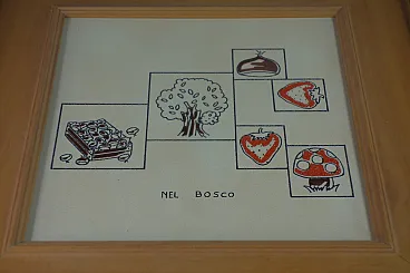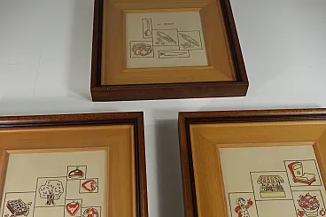 3 Piastrelle Art Naif in ceramica dipinta con verdure, anni '70
