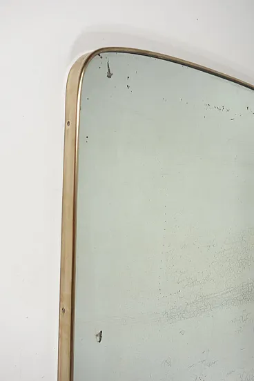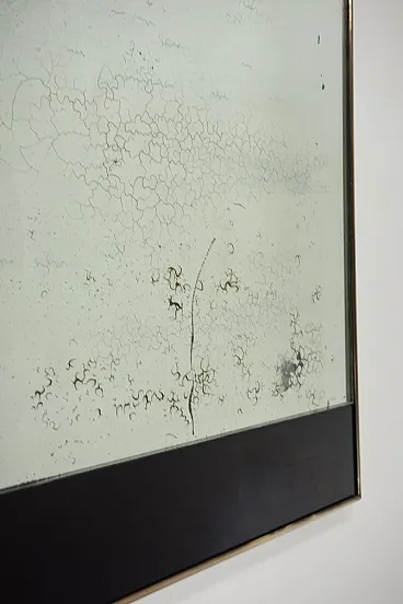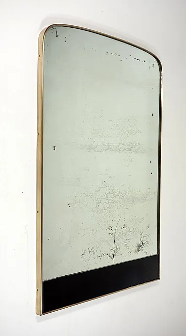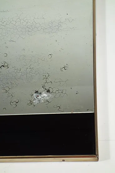 Specchio Mid-Century in ottone e vetro nero, anni '50