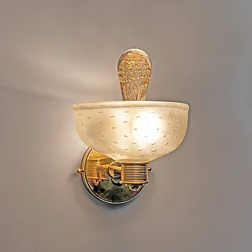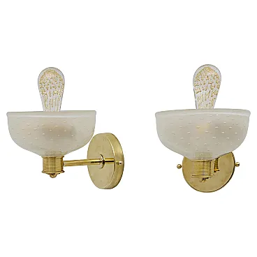 Coppia di applique in ottone e vetro di Murano Pulegoso, anni '90