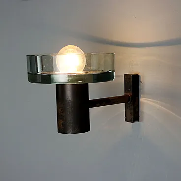 Lampada da parete in metallo smaltato e vetro, anni '60