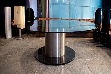 Tavolo Space Age in marmo, vetro e acciaio, anni '70