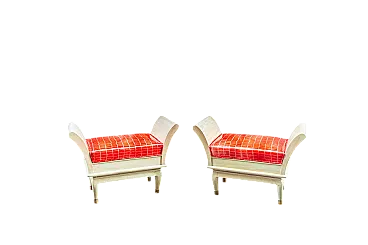 Coppia di sgabelli Art Deco in legno, ottone e pelle, anni '30