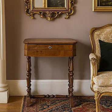 Tavolo da lavoro in noce con cassetto, '900