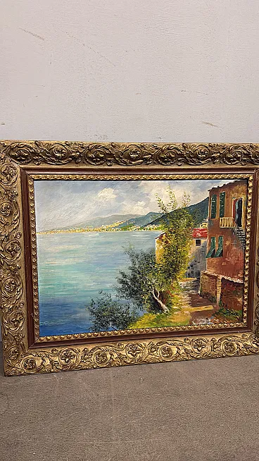 Olio su tela raffigurante Golfo di Napoli, anni '50