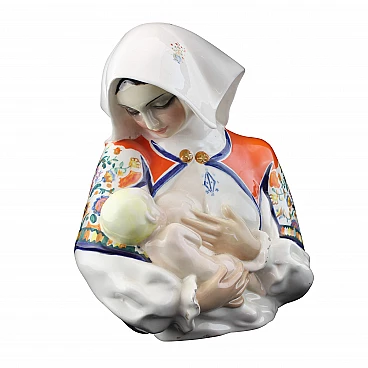 Statuetta in ceramica di una mamma con bambino di Sandro Vacchetti