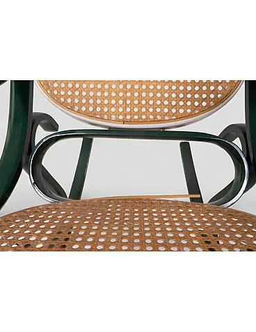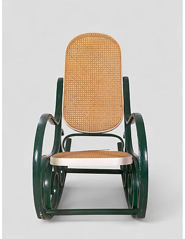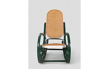 Sedia a dondolo stile Thonet in legno curvato e paglia di Vienna, '900