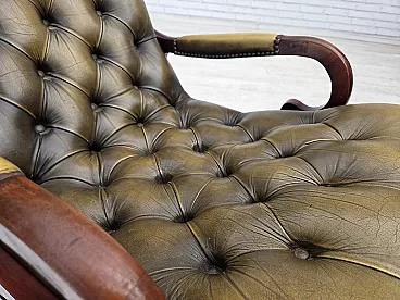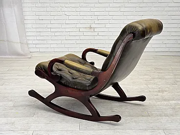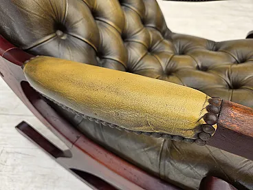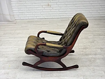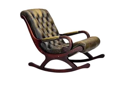Sedia a dondolo Chesterfield, in pelle verde, anni '50