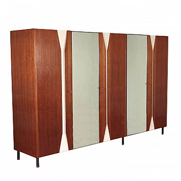 Armadio a 5 ante impiallacciato in mogano con specchio, anni '60