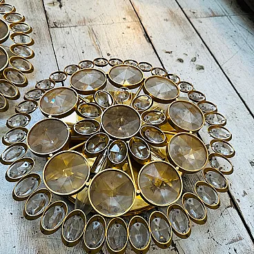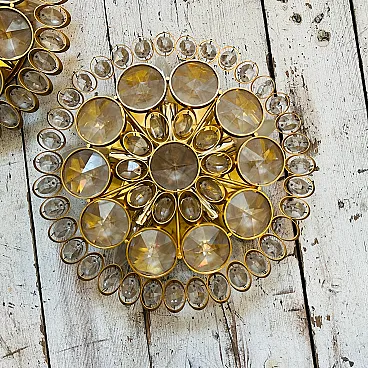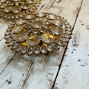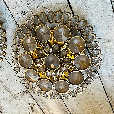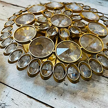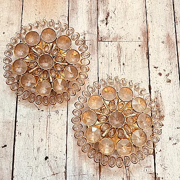 Coppia di lampade da parete o da soffitto in ottone e vetro, anni '60
