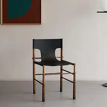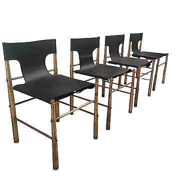 Sedie in ottone e pelle in stile Frigerio, anni 70, Italia